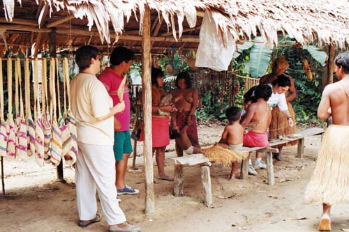 Nach einem stärkenden Mittagessen kehren wir mit der Amazon Queen inmitten eines starken Regens, der uns daran erinnert, dass wir den Zauber des Regenwaldes genossen haben, nach Iquitos zurück, um mit etwas Widerwillen das Flugzeug nach Lima zu besteigen. Erwin Dopf Aus: «Peru-Spiegel / Espejo del Perú», Nr. 89, November 2003 Programm zum Nacherleben dieser Reise